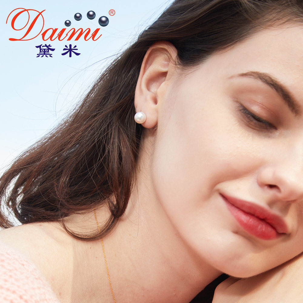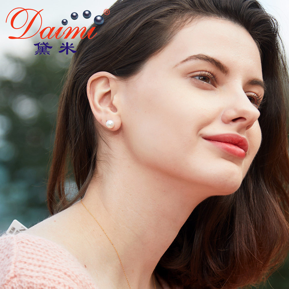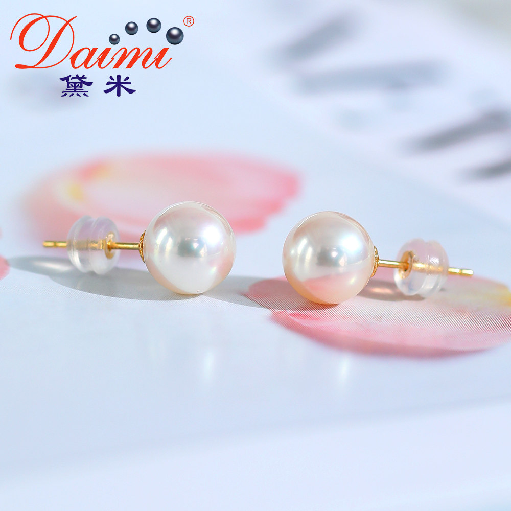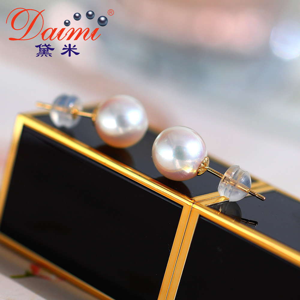 Dei jewels to dazzling round white light bulbs Japan akoya sea water pearl ear nail 18k gold ear decoration female