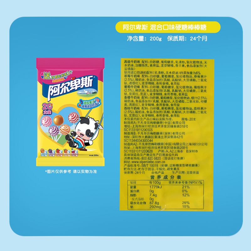 Alpine mixed taste hard candy lollipop 20 creative party snacks Children's gift 200g bag