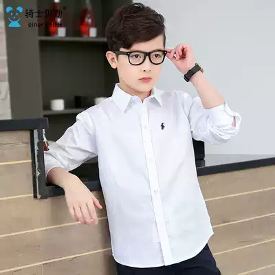 Children's clothing boys white long-sleeved shirt pure cotton middle and high school children spring and summer student performance shirt Children's school uniform 15 years old