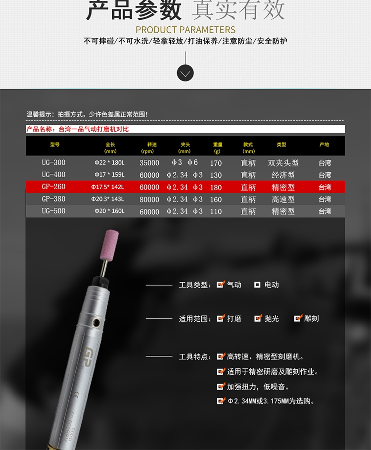 Taiwan Yipin Besdia pneumatic grinding machine GP-260 mold grinding machine rotating wind grinding polishing pen crafts