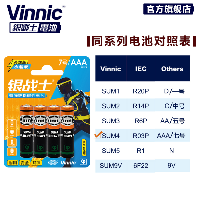 vinnic silver warrior original fit 7 Number of carbon number 7 Number aaa1 5V Home durable dry battery Applicable small current Home TV Air conditioning Electric fan Remote control equipment Battery
