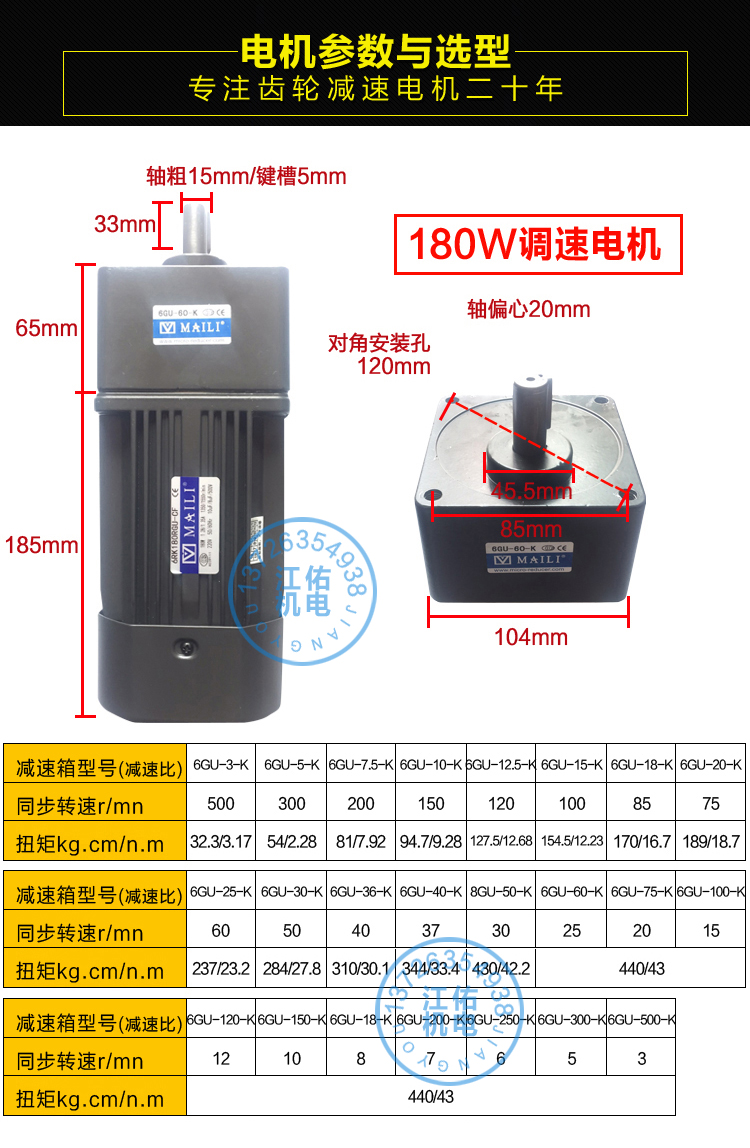 MAILI 6RK180RGU-CF exported to Korea MAILI 180W speed regulating gear motor
