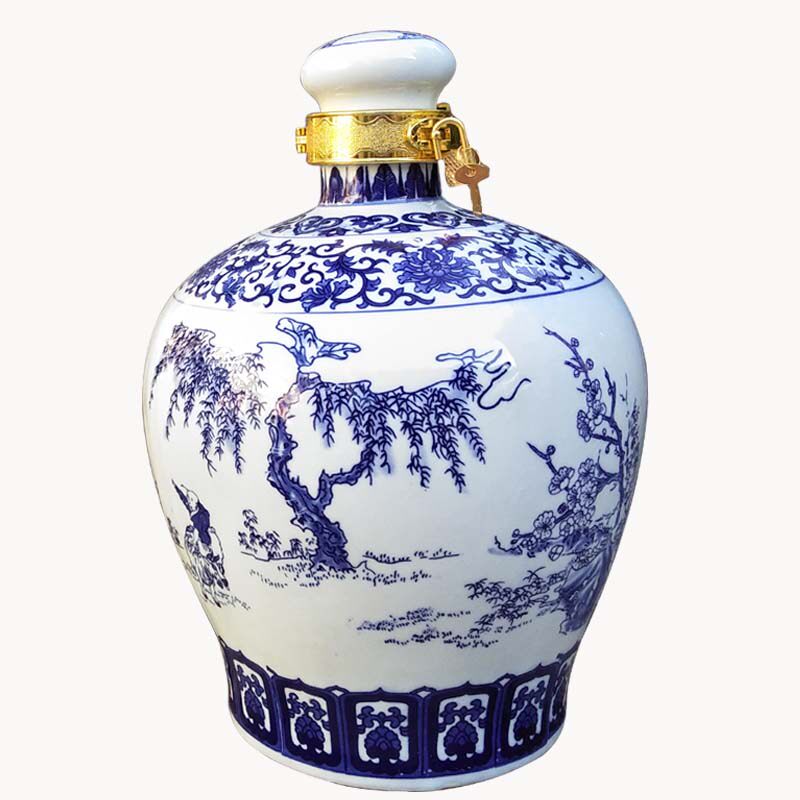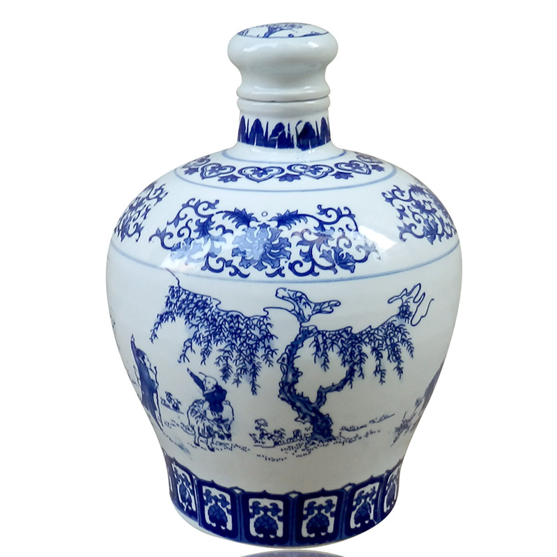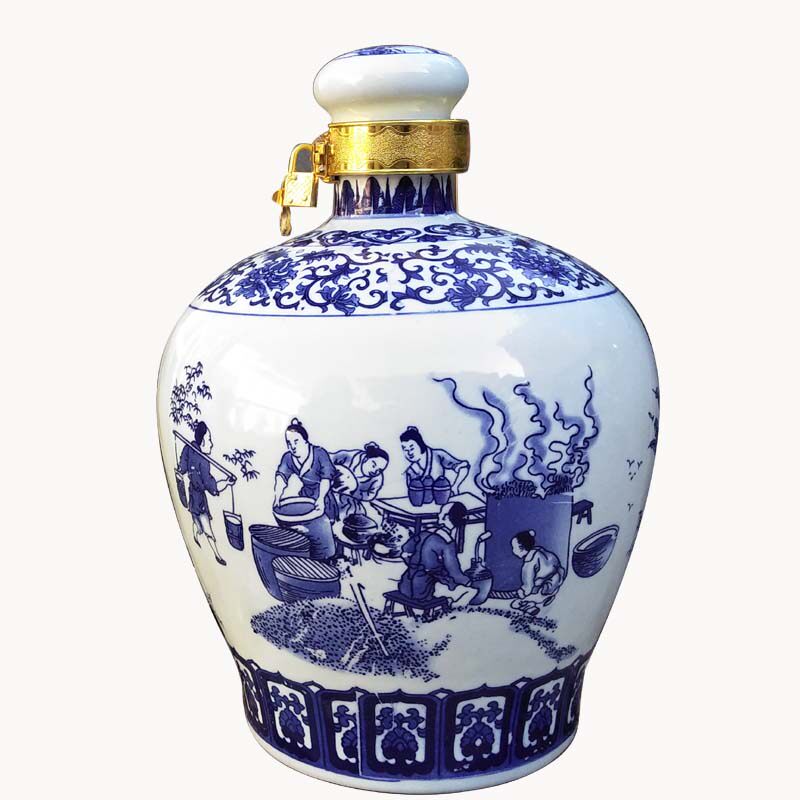 Jingdezhen ceramic wine bottle empty bottle 10 jins small mouth sealed empty wine tank wine jug Tibetan wine tank home bubble wine jar