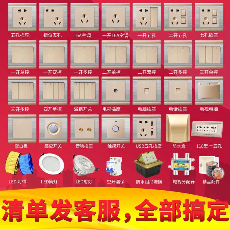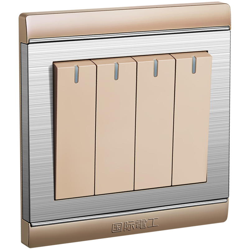 International electrician wall switch socket panel household light switch 86 type four 4 open brushed gold four open single control