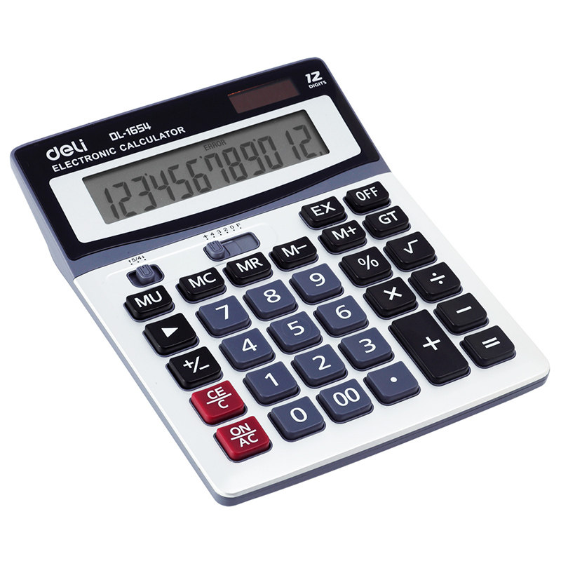 Deli 1654 large screen 12-bit calculator with manual shutdown Solar dual power supply Financial calculator