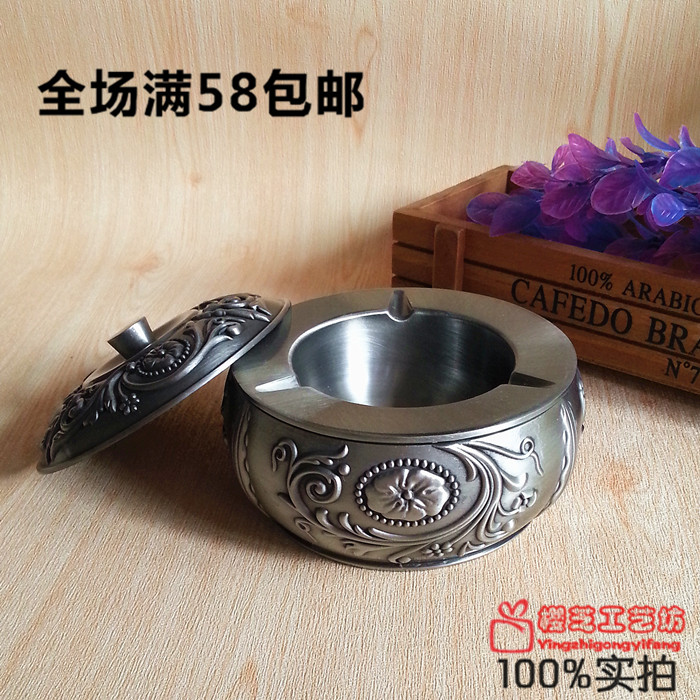 Russian color tin with lid ashtray bar hotel KTV special retro European birthday gift cigarette dish ornament