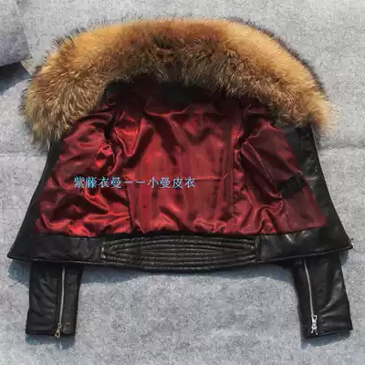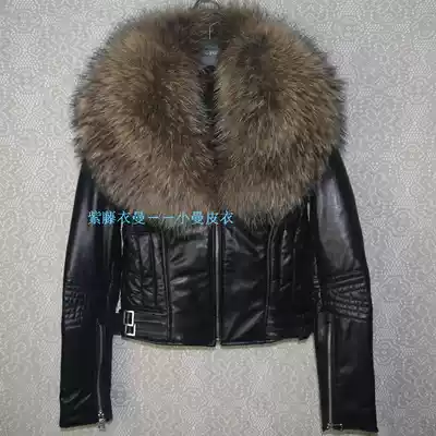 European and American autumn and winter clothes new big raccoon fur collar locomotive sheep leather short leather leather women fur jacket wallet