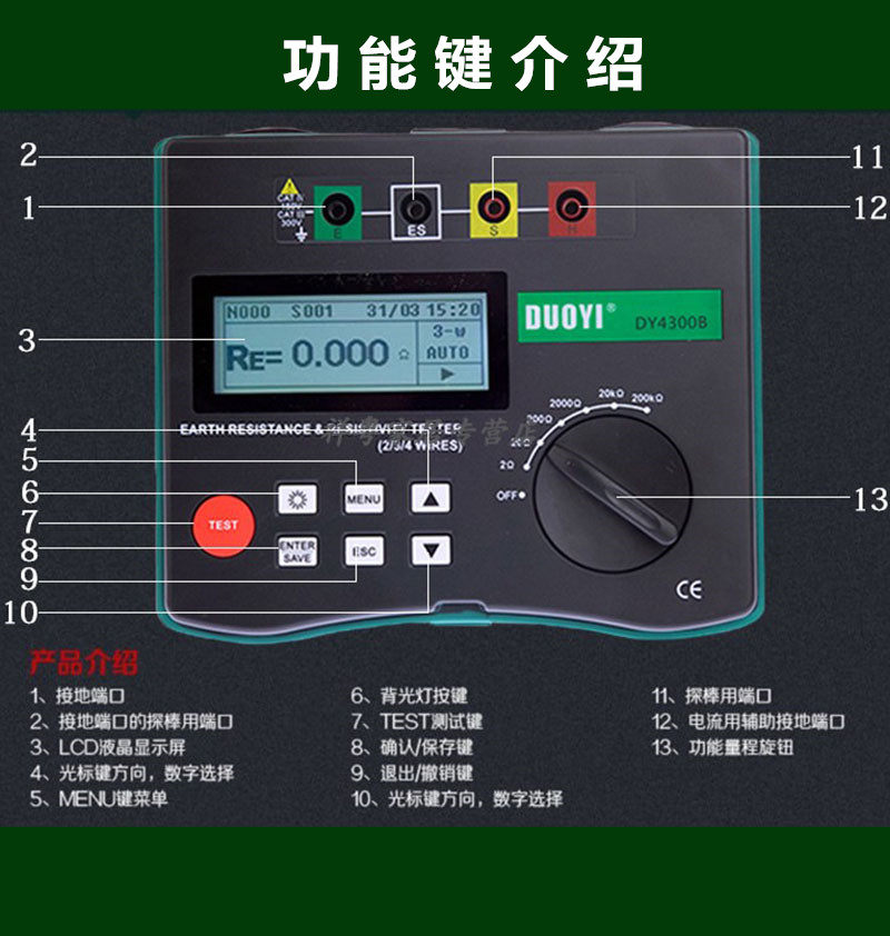 Lightning protection instrument more than one DY4300B Digital ground resistance measuring soil rate tester storage