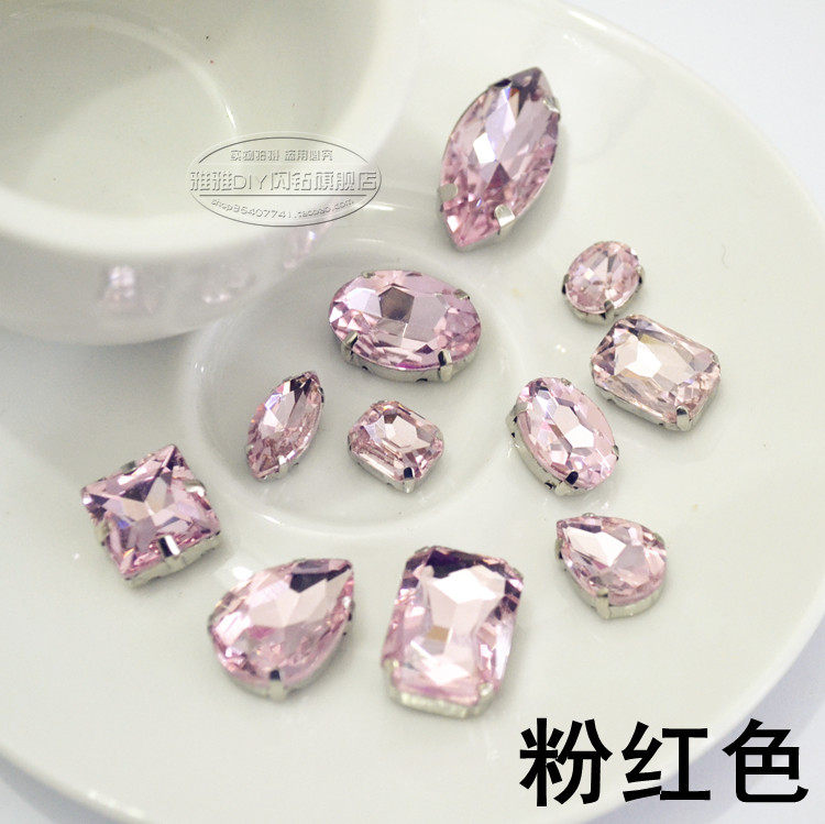 Pink hand-sewn diamond Guomao glass shaped claw diamond Hand-sewn stone clothing DIY stick diamond accessories material bag