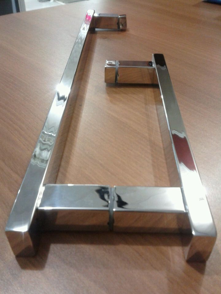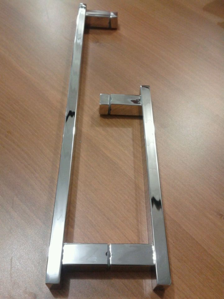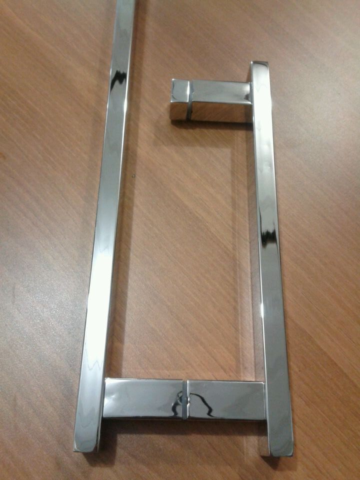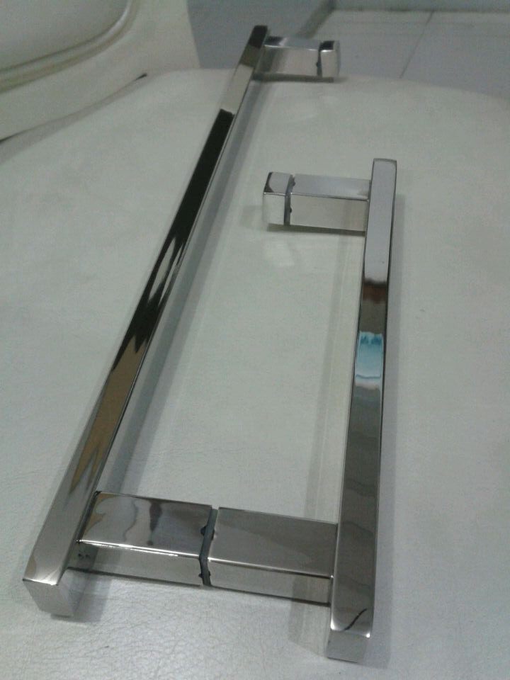 Stainless steel bright thickened glass door handle shower room bilateral seven-character handle hole distance 20X40cm