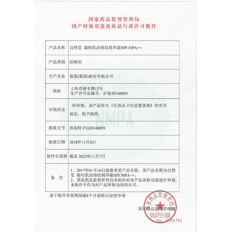 The registration certificate number of the cosmetic filing number: