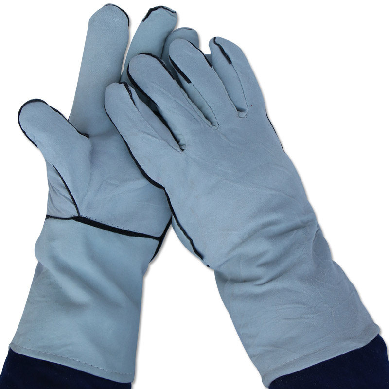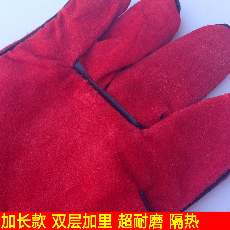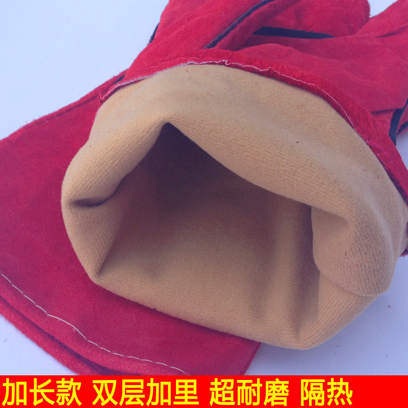 Electric welding gloves cow leather abrasion resistant welding anti-heat and stab-proof two-layer thickened lengthened pure cow leather electric welding gloves