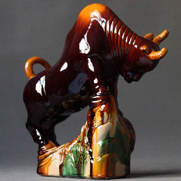 Tang Sancai Bull Swing Piece Money Bull Ceramics Handiwork Swing Piece Home Residence Ornament Decorative Pendulum of Transit Bull Gift
