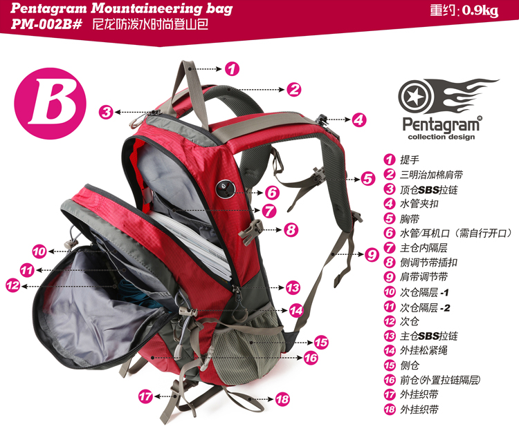 Ex-gratia Pentagram Pentagram Light Weight Edition Travel Bag Casual Outdoor Splash Climbing Hiking