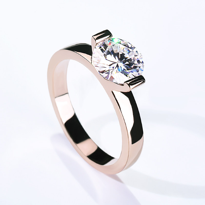 American CC moissanite ring female 18k rose gold 1 carat diamond ring color gold simple ring fashion female engagement ring