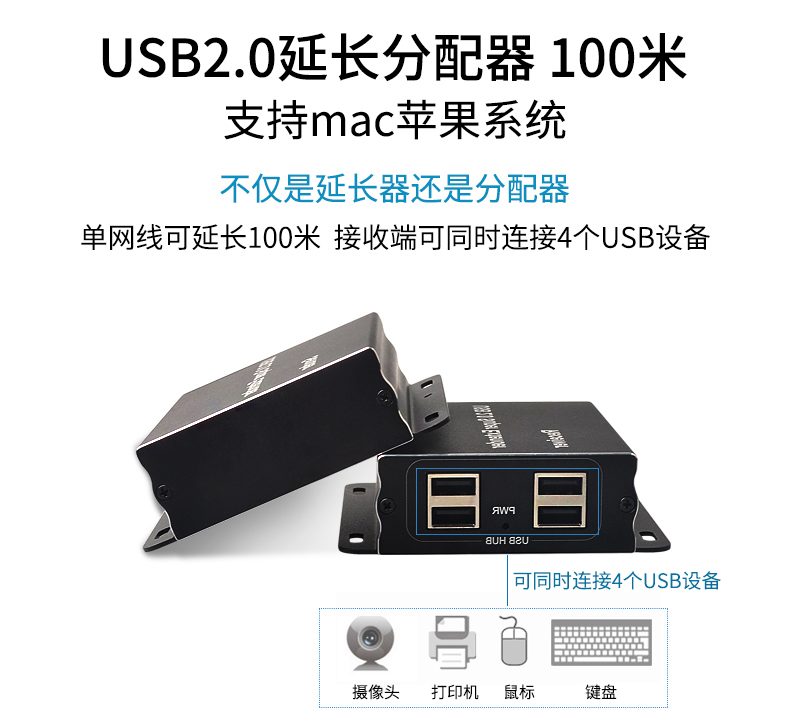 EKL-HUE USB extender 100m USB splitter 1 in 4 out mouse keyboard amplifier to network cable RJ45 port 2 0usb camera extension