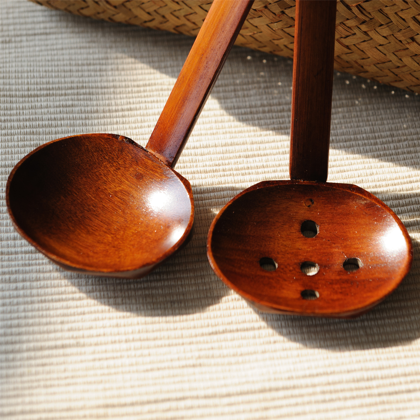 Ruoxu life creative kitchen utensils Japanese wooden long handle large hot pot ramen colander spoon spoon spoon water ladle spoon