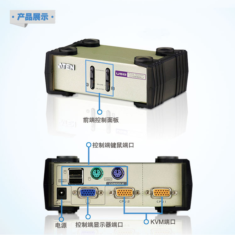 ATEN macro positive CS82U VGA USB KVM switcher 2 into 1 out of 2 mouths PS2 USB key rat shareware computer host display switching dispenser high