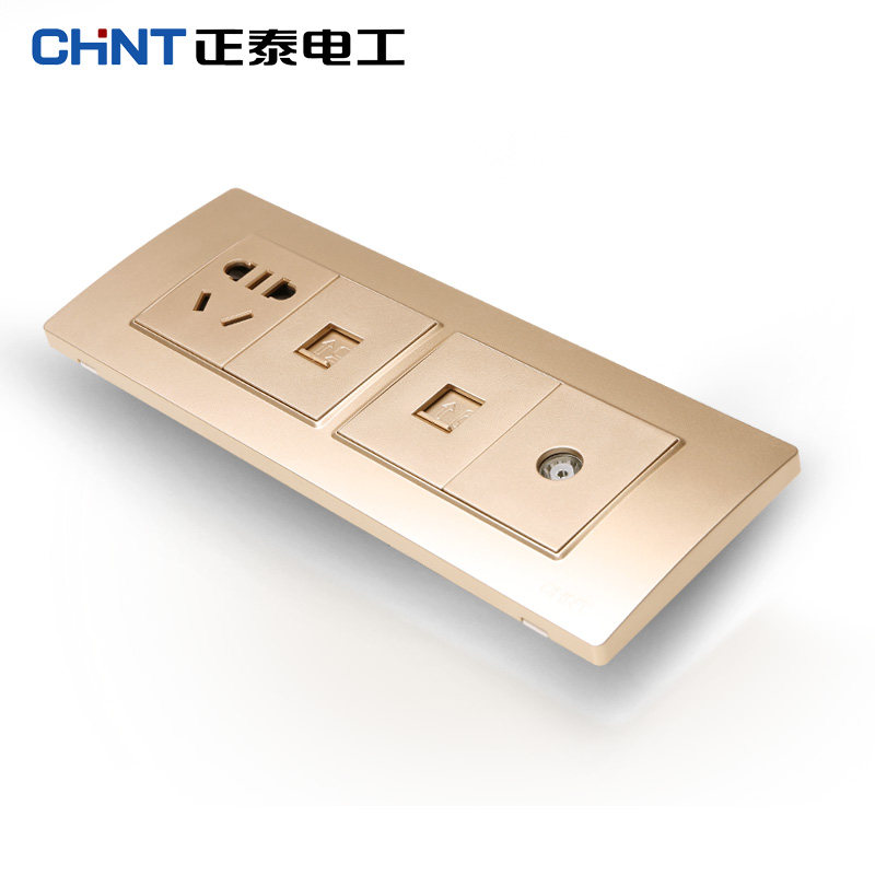 Chint Electrician 118 New5D Steel Frame Champagne Dazzling Gold Four-digit one socket + TV + computer + telephone