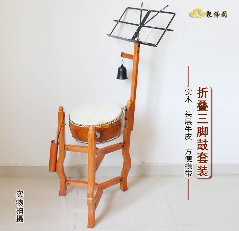 PolyBuddhist Attic Taiwan Buddhist-Buddhist Triangle Method Drum * Three-foot flat drum frame 14-inch advanced flat drum bronze imperial bell