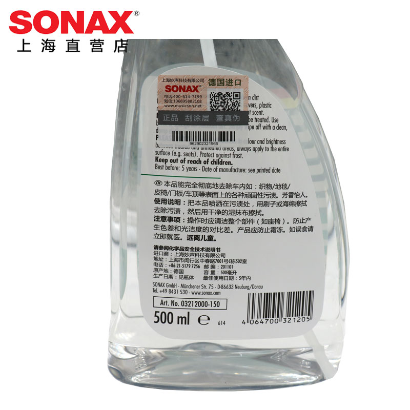Sonax Car Leather Seat Cleaner Roof Fabric Car Wash Interior Special Decontamination Cleaning