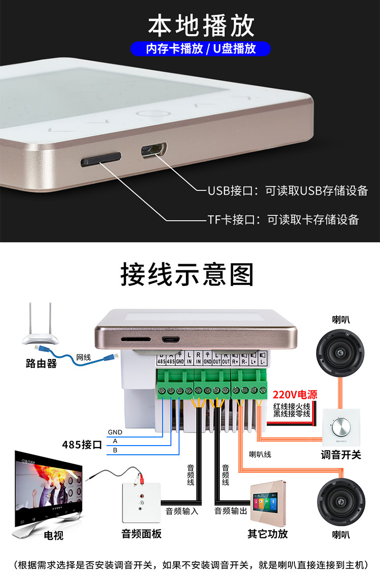 Tianlai TL-86C 86G home background music system controller host WIFI smart home Bluetooth power