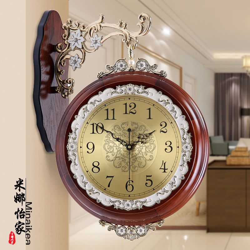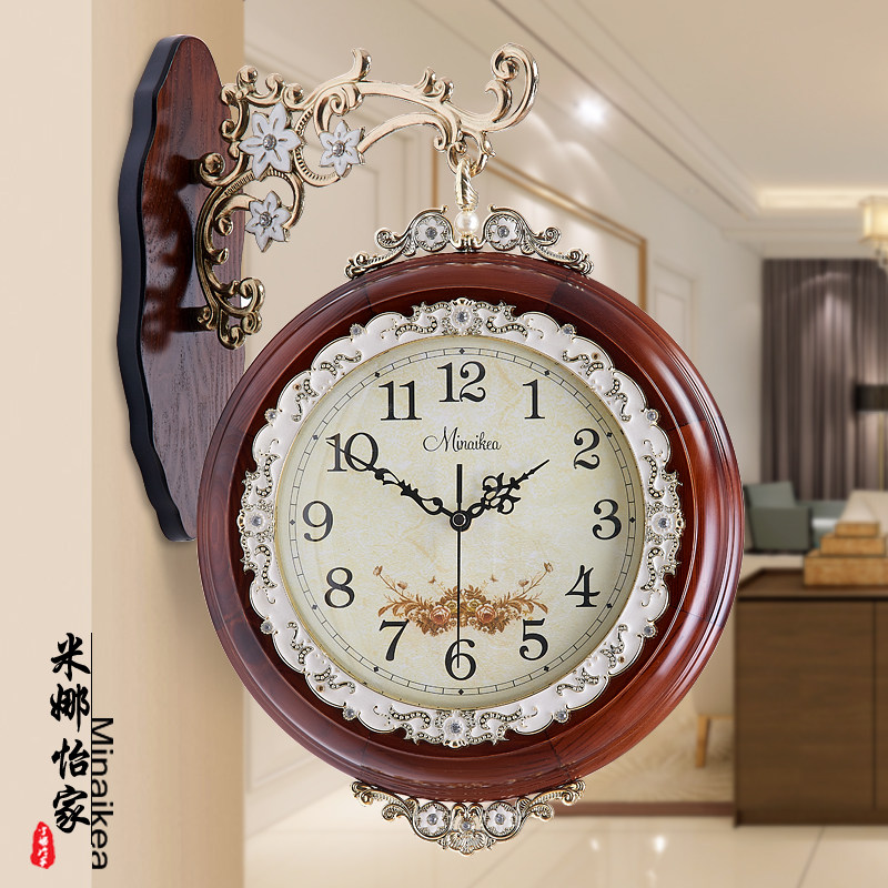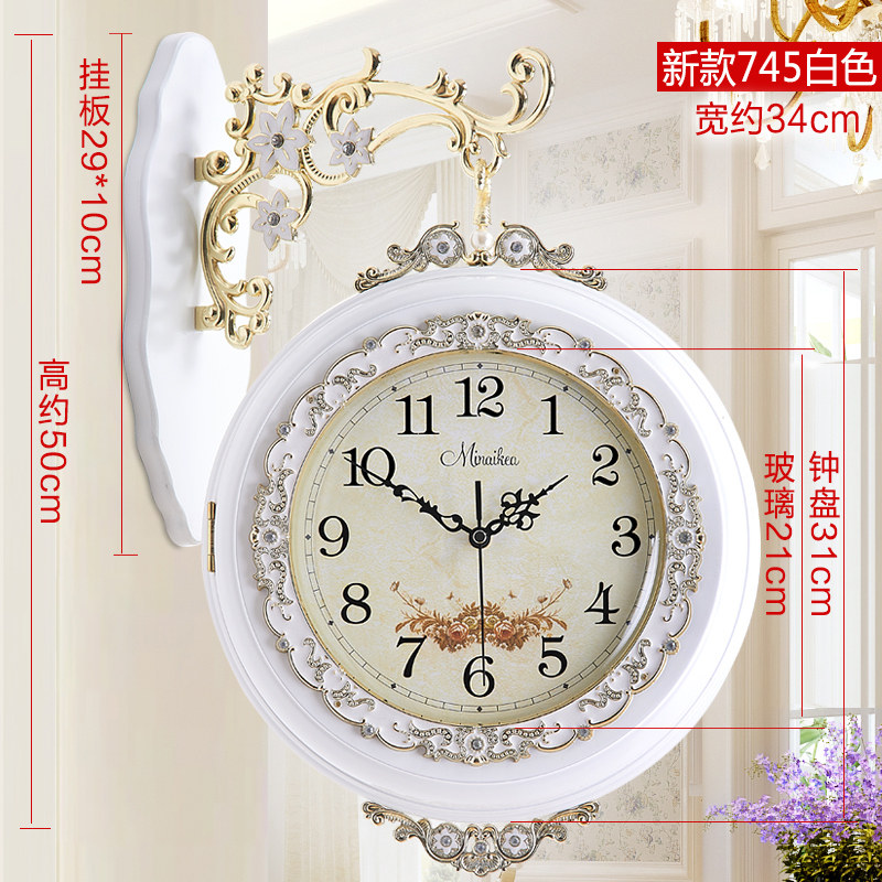 European style double-sided living room wall clock clock mute large two-sided creative personality pastoral quartz clock fashion simple
