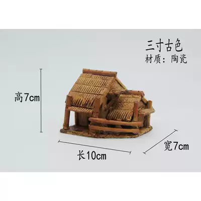 Ceramic Shuangliao thatched house bonsai accessories rockery ornaments Fish tank landscaping decorations Running water fountain absorbent stone decorations