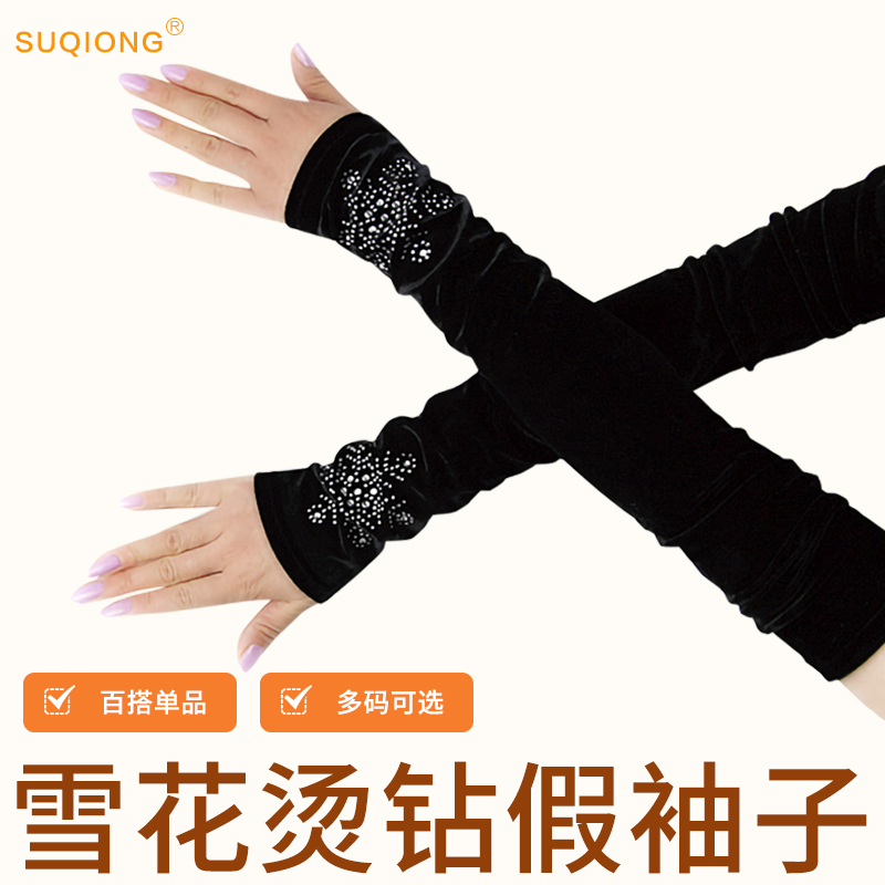 Korean version of velvet snowflake hot drill arm cover Autumn and winter half-finger gloves women's open finger gloves extended fake sleeves Women's models