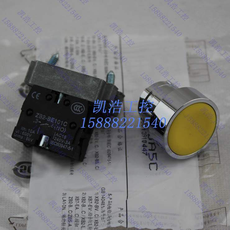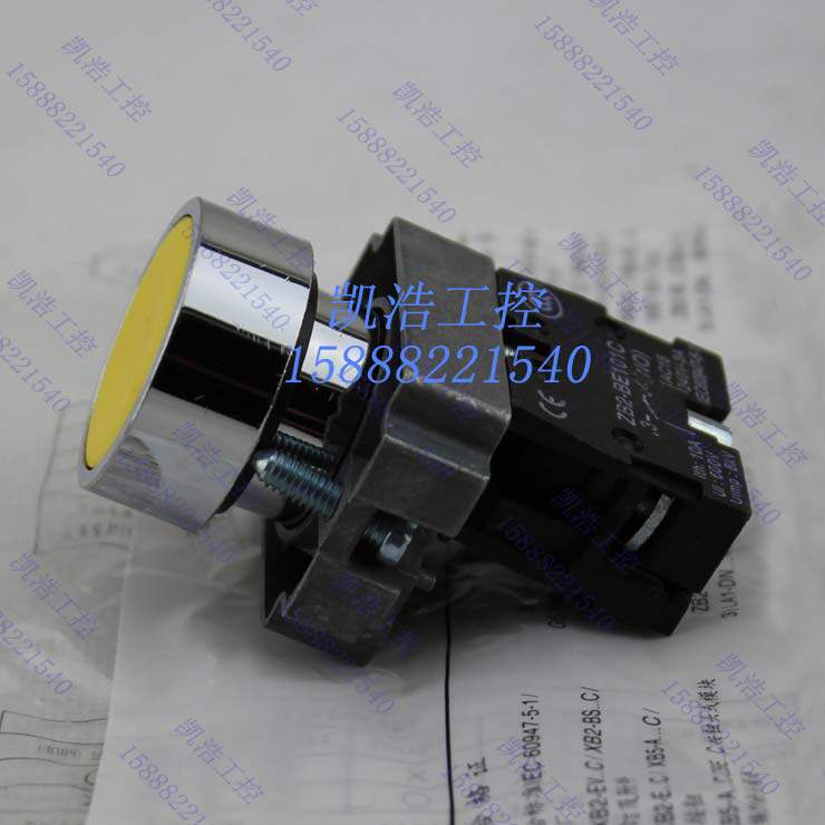 High quality flat head button switch XB2-BA51C yellow self-reset ordinary flat button one normally open 22mm