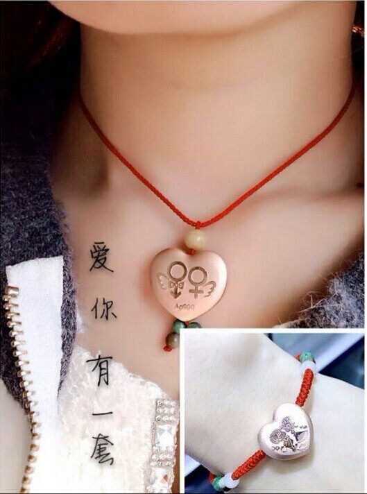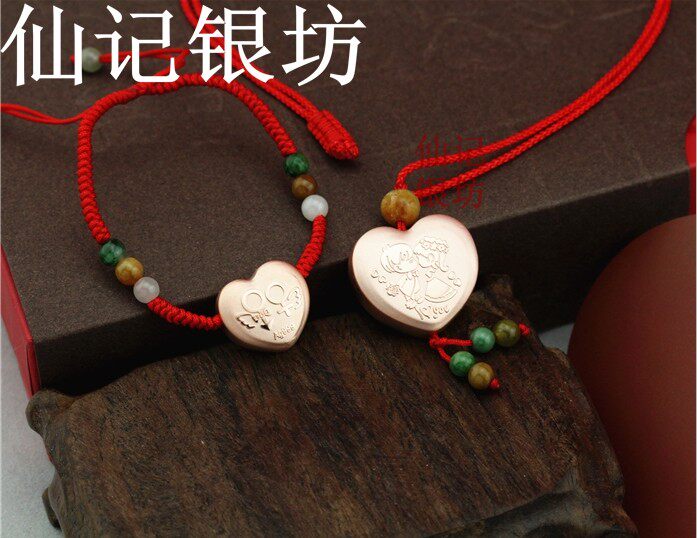 Happy foot silver 990 pure silver ferry gold male and female couples transfer silver jewelry Pine red rope Handmade silver necklace pendant