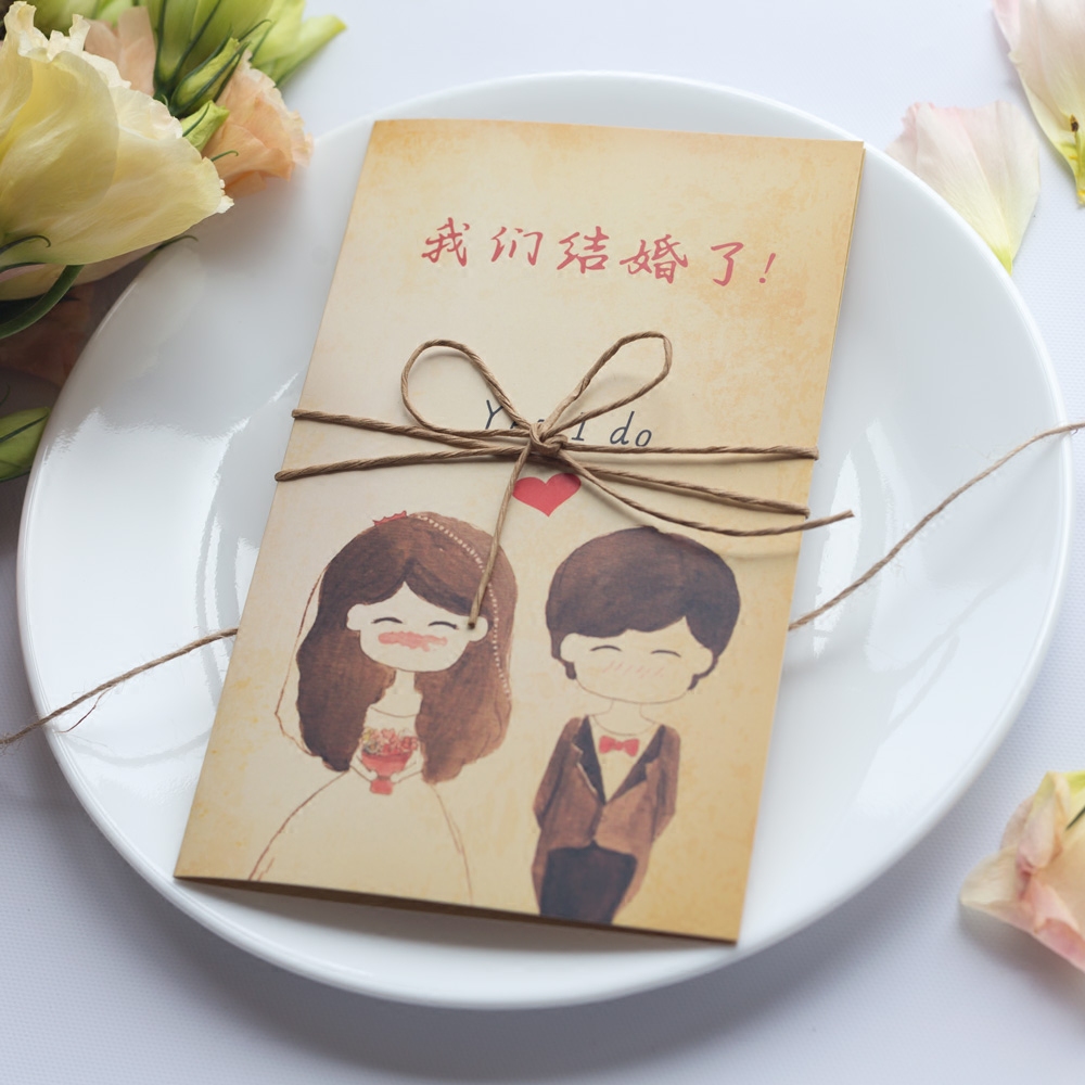 Nostalgia Retro Please Post Wedding Photos Xi Custom Cartoon Wedding Invitation Cambodia Creative Invitation Card Painted Beauty Design