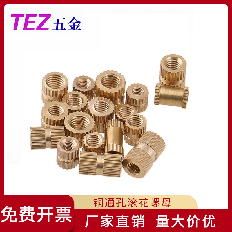 Pure brass knurling nut through hole pre-embedded injection nut inlay M2M3M4M5M6M8M10M12