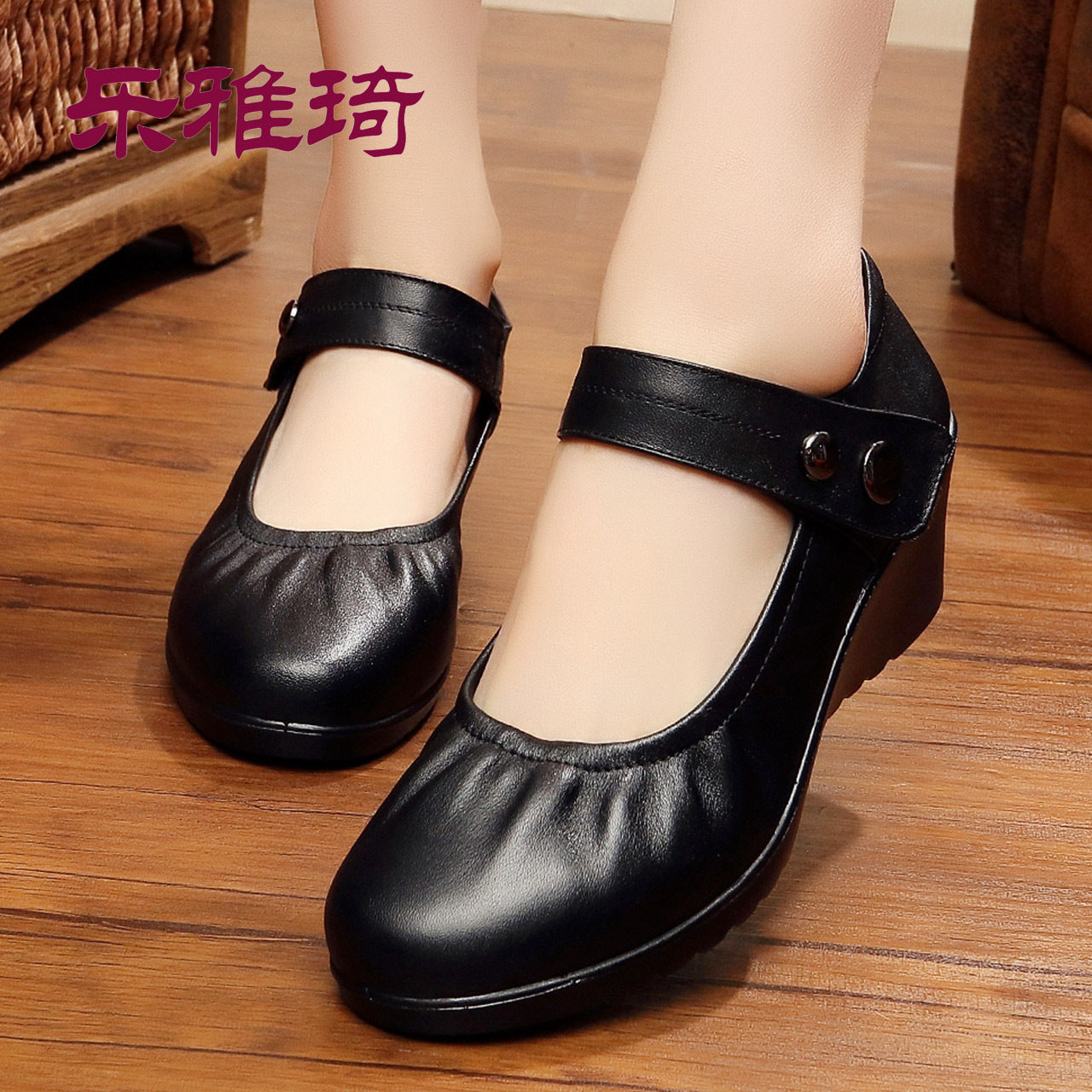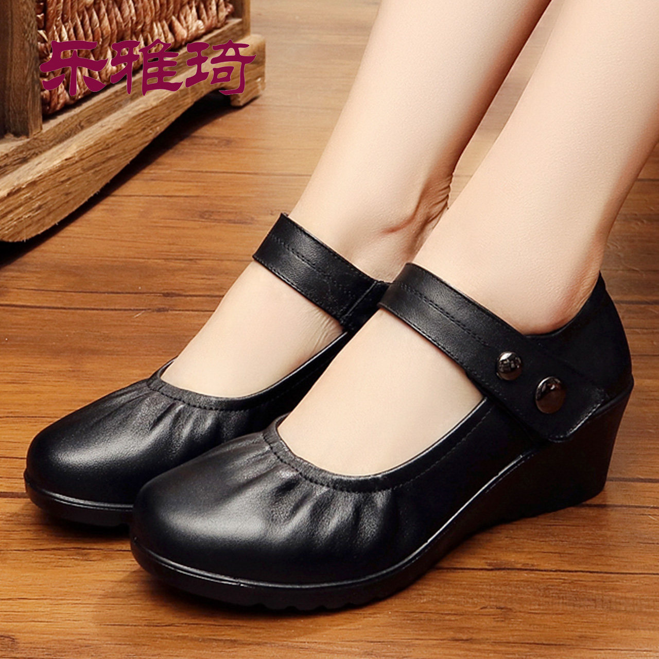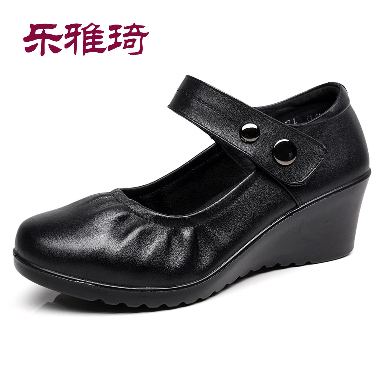 Le Yaqi mother shoes leather soft bottom spring and autumn middle-aged and elderly women's shoes single shoes comfortable wedge leather shoes thick-soled middle-aged