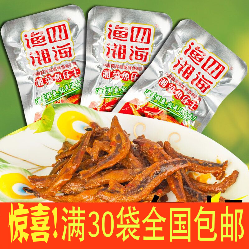30 bags Hunan special production fishing XiangFour Sea Xiangzhou Vegetable Fish Paparazzi and spicy fish Tsai Hunan snack food specie
