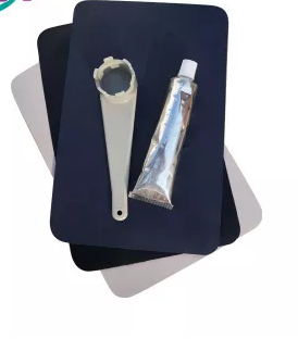 3 pieces, one glue, 3 pieces, one glue, one handle, separate wrench (no separate handle), one glue (full three), one inflation valve (two), 4 motor bracket buckles, 2 glues