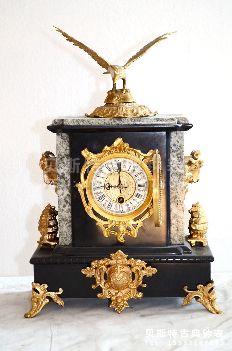 Mechanical cast copper marble clock ) old - fashioned replication ancient string table clock ) European - style home decoration