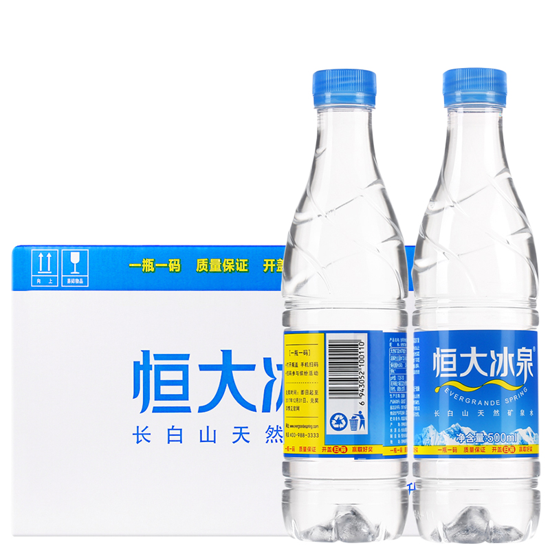 Evergrande Ice Spring Mineral Water 500ml * 24 bottles of changbai mountain natural weak alkali drinking water Jiangsu, Zhejiang, Shanghai and Anhui