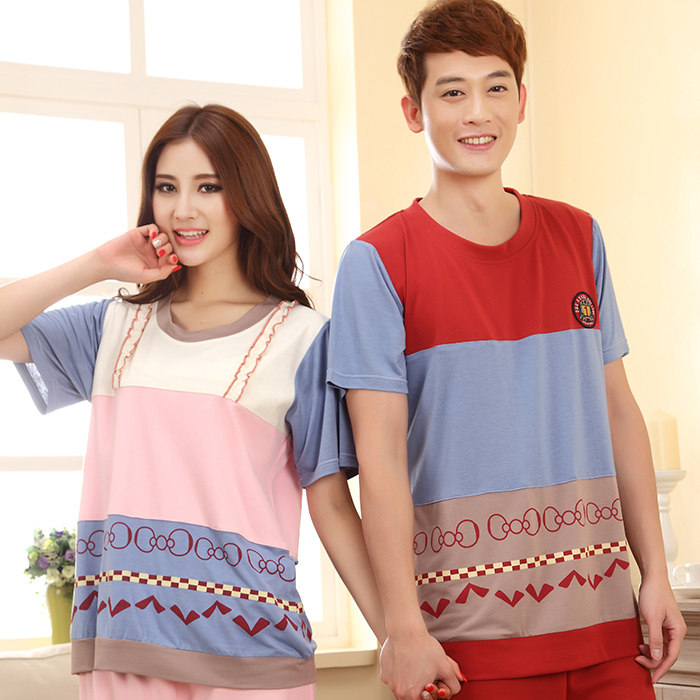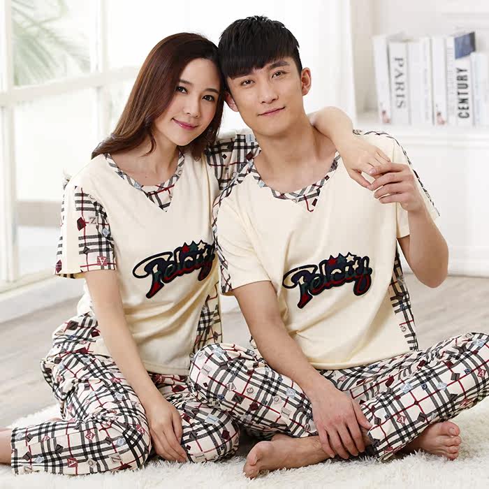 Summer lovers pure cotton short sleeves Long pants pyjamas ladies full cotton pyjamas for men Gats to step up overweight family clothes