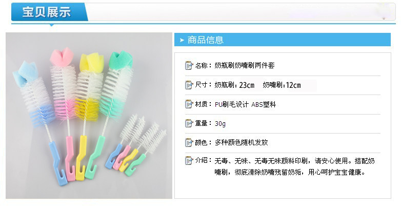 Baby bottle brush Pacifier brush two-piece set Baby cleaning cleaning bottle pacifier Nylon foam brush set
