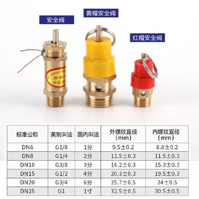 Safety valve Red Hat 1 8 (1 min 8kg) Safety valve Red Hat 1 4 (2 min 8kg) safety valve yellow hat 3 8 (3 min 8kg) safety valve yellow hat 1 2