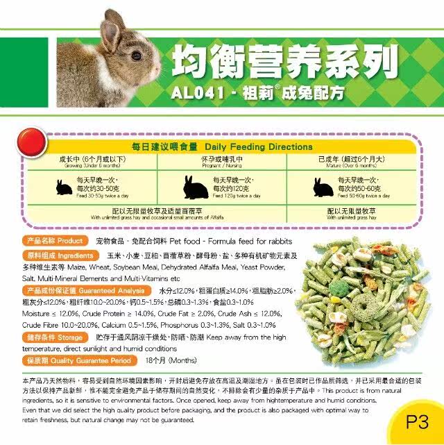 JOLLY Zuliti Moses integrated rabbit grain 1 kg pet rabbit main food feed al041