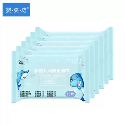 Baby Wipes 6 packs 15 pieces of baby hand mouth wet wipes baby wipes baby wipes do not emollient wipes