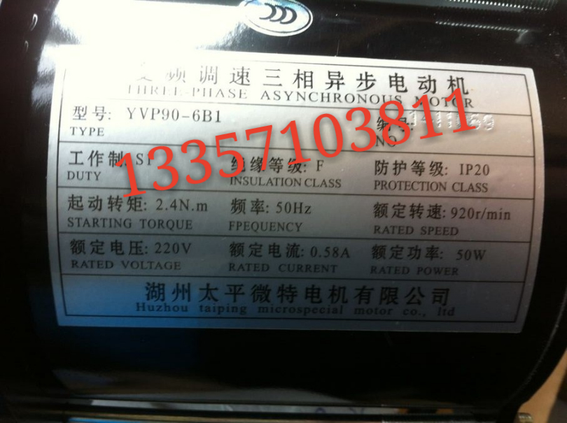 Otis Huzhou Taiping Motor YVP90-6B1 Variable Frequency Speed Regulation Three-Phase Asynchronous Motor
