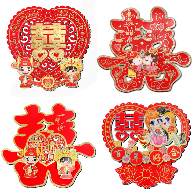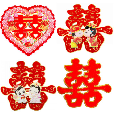 Wedding supplies Wedding big red happy word wedding wedding room decoration creative door Lixu Happy word sticker