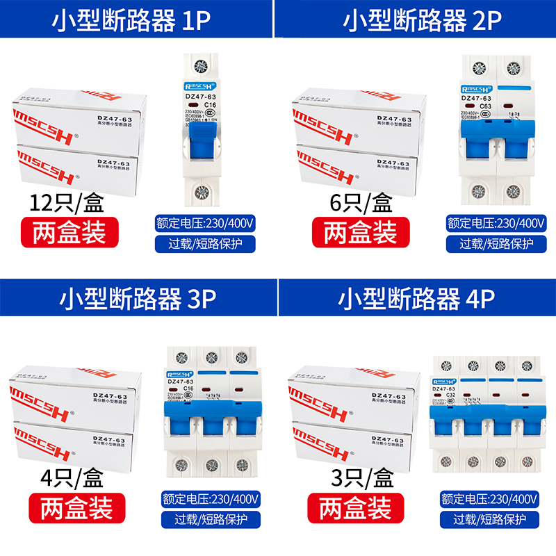 DZ47-63 Mini circuit breaker air switch 1p2p3p4p household air open 6a-32a63a leakage 2 boxes