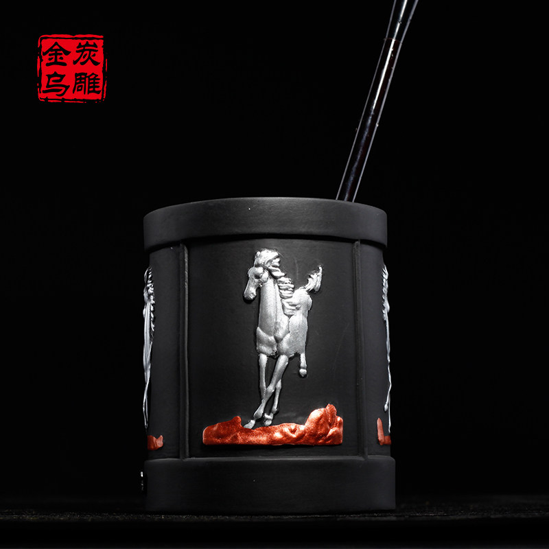 Brocade embroidered front pen holder 100 x 120 One horse when first pen holder 100 x 120 and music auspicious combination 300 * 120 * 130 Fugui Tongyeong 100 * 120 (blue)