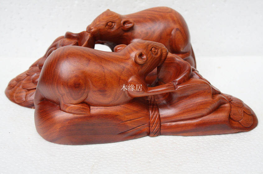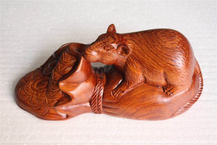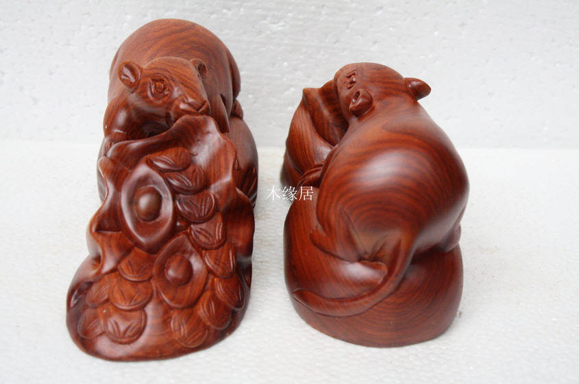 Special offer red three crown Burmese rosewood whole wood carving zodiac money mouse decoration mahogany decoration