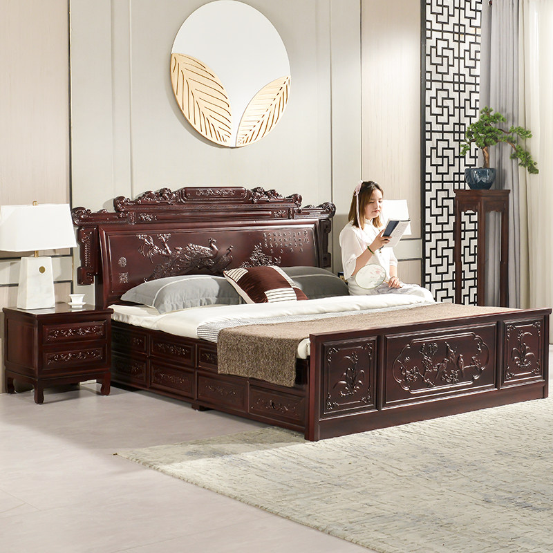 Peacock big bed Peacock big bed 2 meters * 1 8 meters Peacock big bed 8cm environmental protection latex brown cushion new peacock bed two bedside tables () new peacock bed two bedside tables boutique mattress ()