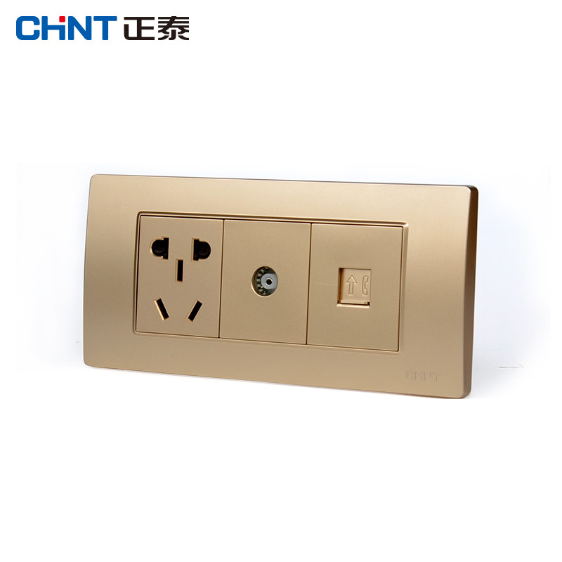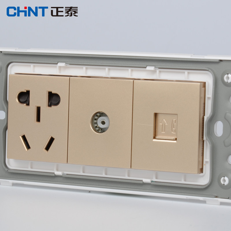 Chint Electric 118 type socket NEW5D steel frame champagne dazzle gold three-digit one socket TV phone